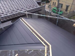 既存屋根の上に防水シートをしっかりと施工し、その上から新しい屋根材を丁寧に葺いていきました。