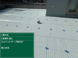 シートの継ぎ目にはジョイントテープを貼り、気密性を確保しています。