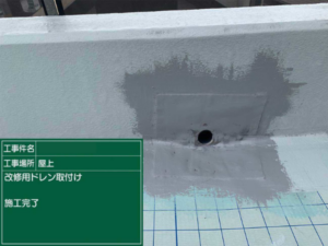 あわせて劣化していたドレン部分には改修ドレンを取り付けました。これにより、排水機能も改善しています。