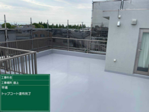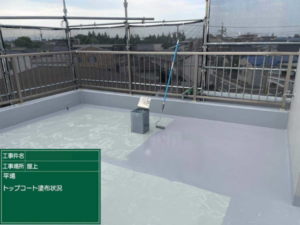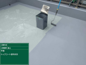 最後にトップコートで仕上げることで、紫外線から防水層を保護し、耐久性を高めています。