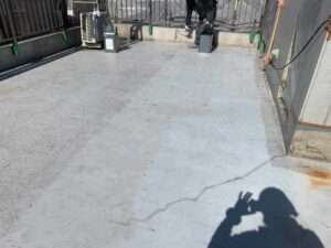 屋上にはひび割れや劣化が見られ、防水機能が低下している状態でした。