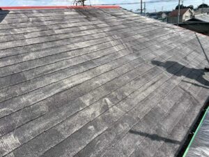 現地で確認させていただくと、ご使用されていたスレート屋根の色あせが進んでおり、防水性能も低下している状態でした。