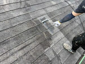 屋根を新しくする屋根修理も提案させていただきましたが、お客様のご希望で、雨漏り予防のためにと、屋根塗装にて施工させていただく運びとなりました。