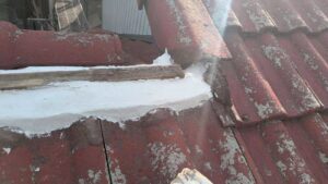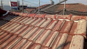 本来であれば、屋根を土台から新しくする「葺き替え工事」が望ましいのですが、コストがかさむため、お客様のご予算の都合もあり、今回はできる限りの対策をとご提案。